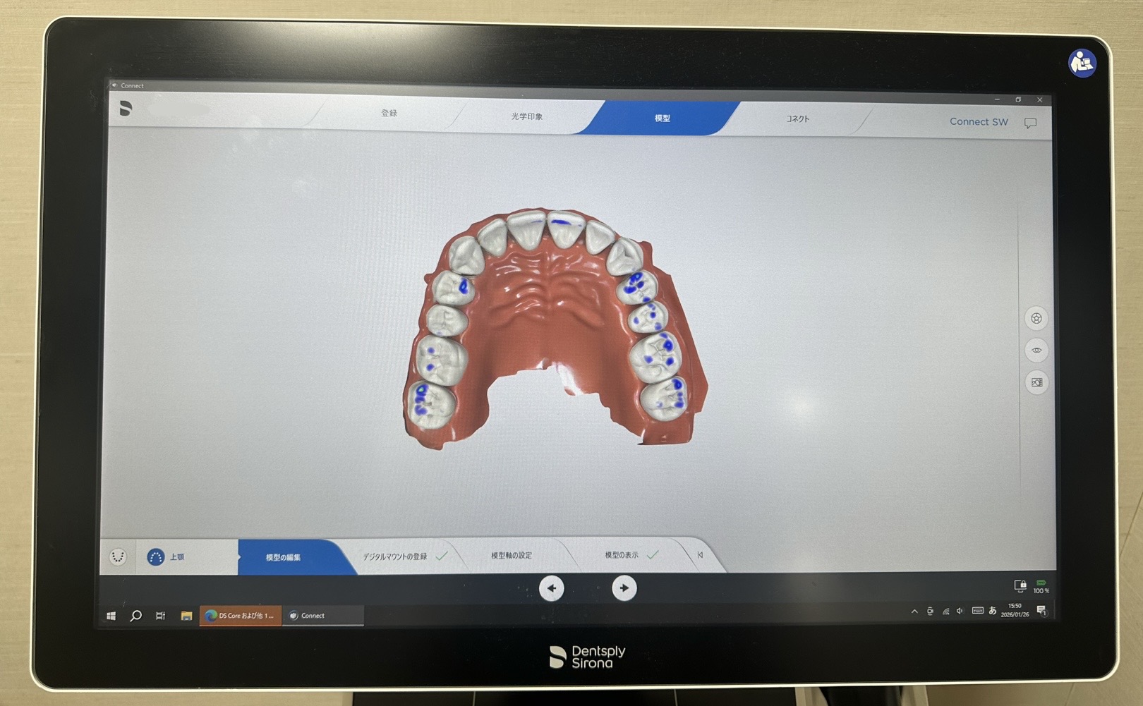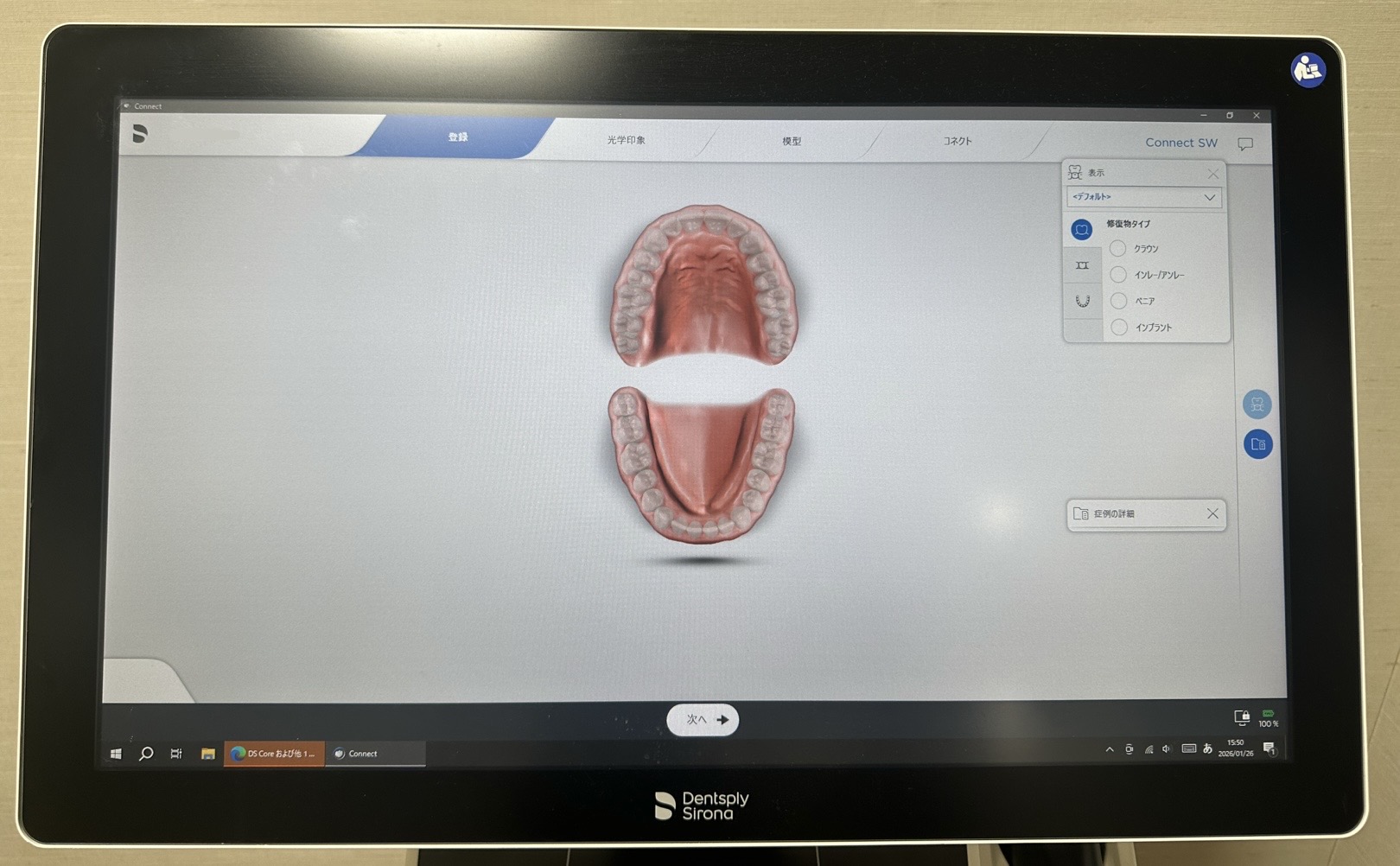 お口の中を小さなカメラでスキャンして、コンピューター上に立体的な歯型を作る最新技術です。