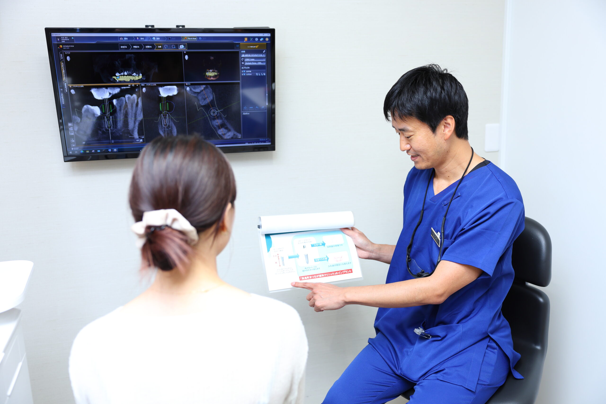 外科手術をともなうインプラント治療において、患者様の理解と納得は必要不可欠です。初診時のカウンセリングや治療計画の説明において、丁寧かつ分かりやすく情報提供を行っているかどうかは、医院の姿勢が表れる部分です。