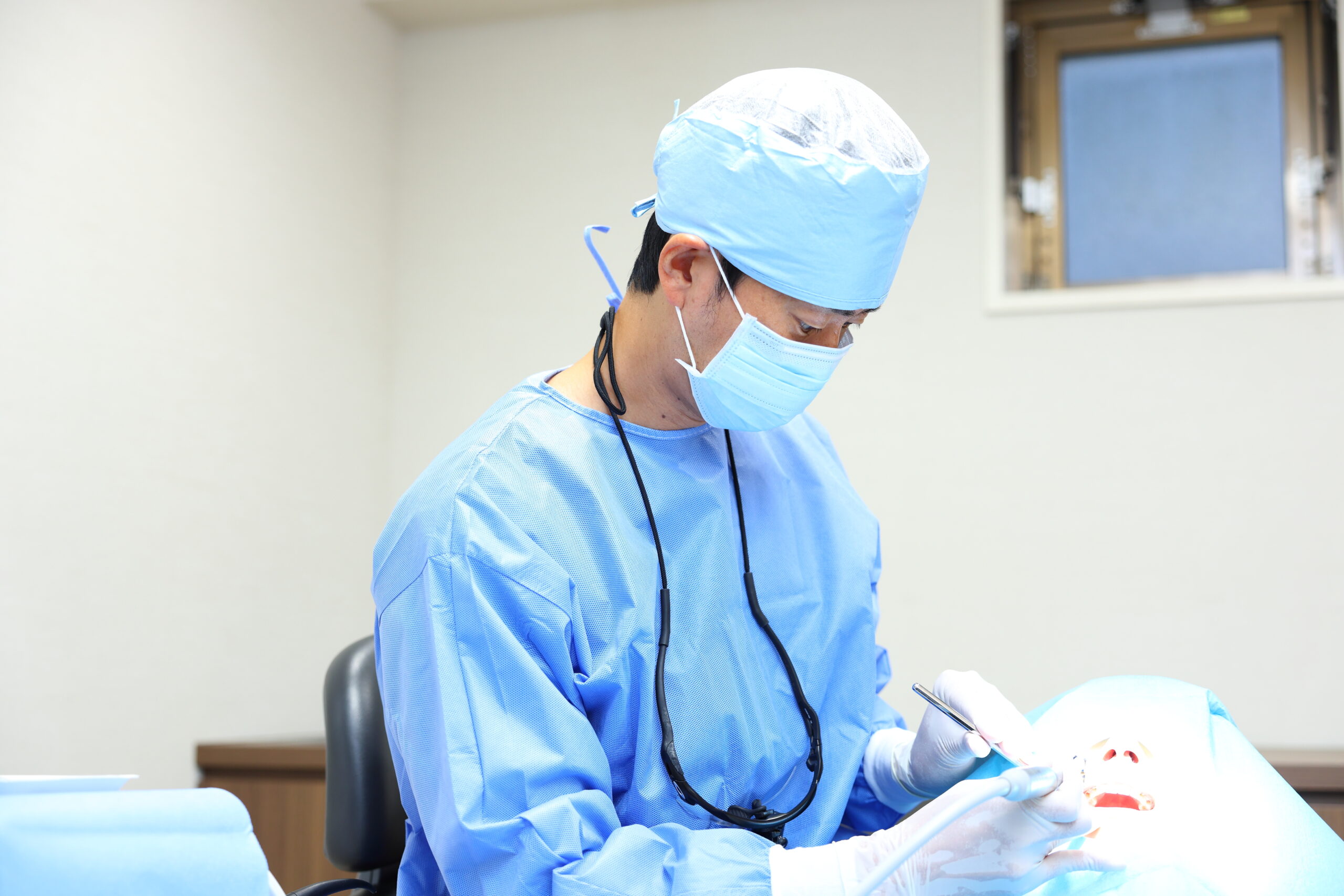 インプラントは、歯を失った部分の骨に人工の歯根を埋め込み、機能と見た目の回復を図る治療です。通常のむし歯治療とは異なり外科処置が必要になるため、高い技術と、衛生的な環境設備が求められます。