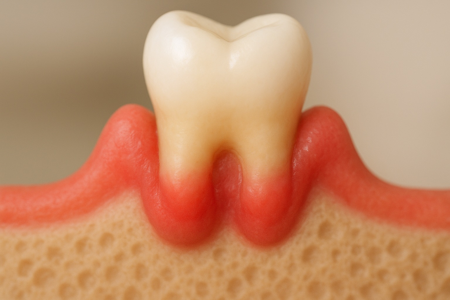 を支えているのは、歯ぐきや歯槽骨などの「歯周組織」です。これらが歯周病菌によって徐々に壊されていくのが「歯周病」です。初期は痛みなどの症状が出にくいため、気づかないうちに進行してしまうことも少なくありません。